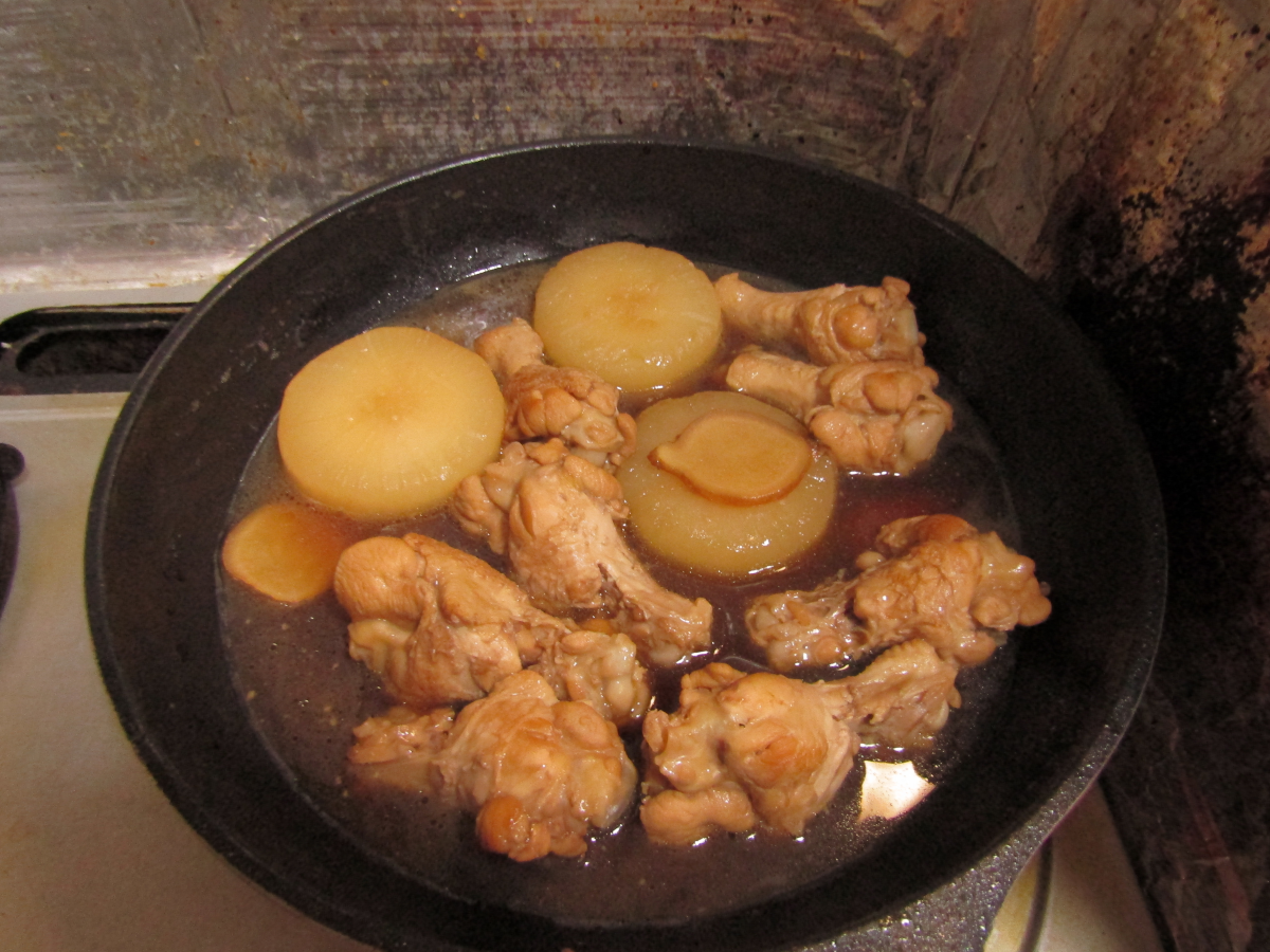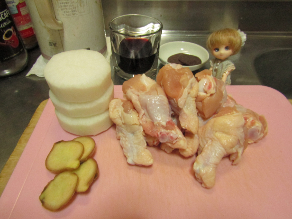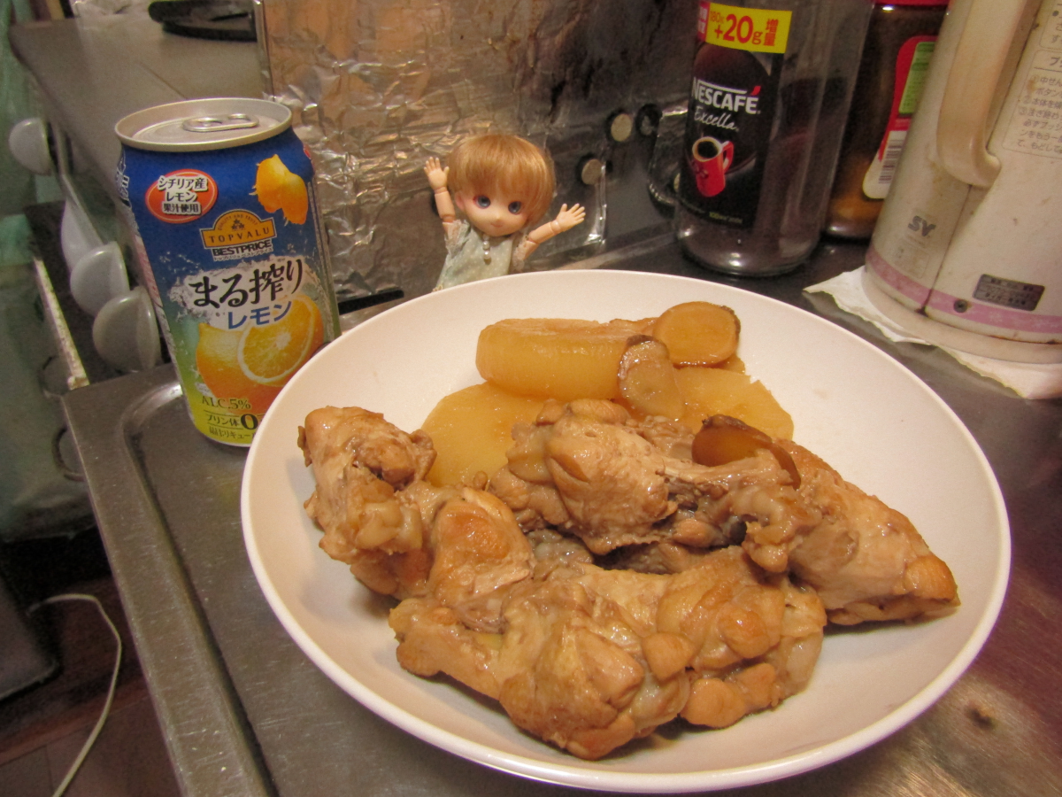 2022/09/30 Category : ドール 鶏を煮よう!! お久しぶりです泡崎です。 最近はツイッターにいるため、とんと更新しておりませんでした。 気まぐれにちょっと更新します。 さて、夏も過ぎましたが残暑厳しい毎日。 でも夕方にもなれば少し涼しくなってきますね。 どうです、温かいものでも作りませんか? ツイッターのほうで上げています通り、 泡崎、料理をするのも趣味のひとつ。 面倒なようでそれほど面倒でもない料理をしてみませんか。 鳥の手羽元煮です。 ☆材料: ・手羽元 ・生姜 ・大根(お好みで こんだけ。 鶏だけでは寂しいので、大根も入れましょう。 煮た大根は美味しいですよね。 赤い液体はワインで、黒くて薄い何かは牛タンジャーキーです。 コレも材料?いいえ違います。 泡崎の晩酌とつまみです。 料理しながら飲み食いするだけなんで、ご用意しなくてもいいです。 では早速調理に。 まず生姜を薄切りにします。 次に大根をそこそこの厚さに切って、皮を剥きます。 面取りとかすると、なおいいです。見栄えが!!!!! 次に手羽元に包丁の刃先でブスリと切れ込みを3か所ぐらい入れましょう。 煮込むのが早くなるためと、味を少し染み込ませるためです。 大根にも切れ込みを入れると火の通りがいいです。 油を少し入れたフライパンで鶏を炒めます。 焼色がつく程度でOKです。軽く、ですね。 僕はここでニンニクを少し入れて炒めます。 ほどほど良い感じに炒まったら、水を浸かるくらいに入れます。 そこに生姜と大根も投入。 おいさっきから分量とか書いてないじゃないか、と? 計ってないんで…スンマソン。 なんか自分の好きな味ぐらいでいいんじゃないかな!!!(開き直り まず材料にそこそこ火が通るぐらいまで煮ます。 半分ぐらい煮えたら鶏と生姜を取り出します。 臭みはもう取れてると思います。 大根はもう少し火を入れましょう。 体感、倍の時間で煮込んでください。 料理の記事で「体感」とか曖昧な表現、すごいですね。 大根が少し透き通り始めたら、火から上げてしまいましょう。 フライパンに鶏のエキスがいっぱい出ていますが、思い切って捨てましょう。 このまま調味料を入れて煮込むと油っぽくなります。 味は大根くんが吸っているので大丈夫です。 こちらが調味料。 醤油よりめんつゆをおすすめします。簡単です。 めんつゆ・酒・砂糖をフライパンに入れましょう。 めんつゆはけっこう味が濃いので(割って使うのが前提)、 薄めにしたほうがいいと思います。 あと、お酢を入れるのも良いです。 味が引き締まります。 そんなにいっぱい入れなくていいです。 大さじ1と少し?ぐらいですかね。 フライパンに戻りましょう。 先程の調味料全部と、同量ぐらいの水を入れ、煮ます。 めんつゆ原液だけで煮ないこと!塩分過多で死にます。 必ず水で割りましょうね。 ごま油を入れてみるのも良いです。 コクが出るのと、煮こぼして鶏から油が抜けていますので。 軽く回すぐらいで大丈夫です。 落し蓋をして煮込みます。 落とす蓋がない、という方はアルミホイルの真ん中に穴を開け、 それを上から被せるだけでも大丈夫です。 急に落とす蓋を用意しろ、なんて外道の極みです。 そんな都合の良い蓋あるものかよ!! 全体的に醤油色になり、大根に箸が通り、肉から変な液体が出なければOK。 あとはお好みで煮込んでください。 鶏自体は軽く炒めて軽く煮てますから、 そんなに長く煮込むこともないでしょう。 シミっシミになったやつがいい!という方は続行です。 もうOKですという方は、フライパンを火から離して置いておきます。 煮物は冷ましてる時に味がしみるので、ちょっと放置タイムです。 お夕飯の時間まで待っておきましょう。 以上、調理終了です。 お疲れ様でした。酒でも飲んで味がしみるのを待ちましょう。 こちらがしみたあとのものです。 だいぶ良い色になりましたね。 温め直してくださいな。 ほい、完成。 どうです、全然参考にならなかったでしょう(目分量だから 料理なんてそんなもんでいいんです。 やってるうちに慣れるんです。 大根のアップ。しみてますね。 鶏もよく煮込まれてます。 よく煮ると身の骨離れがいいので、 お好きな方は軟骨のところまでいけます。 かじりましょう。 以上です。 食欲の秋です。 美味しいものを作るのに時間をさいてもよいかもしれませんね。 PR